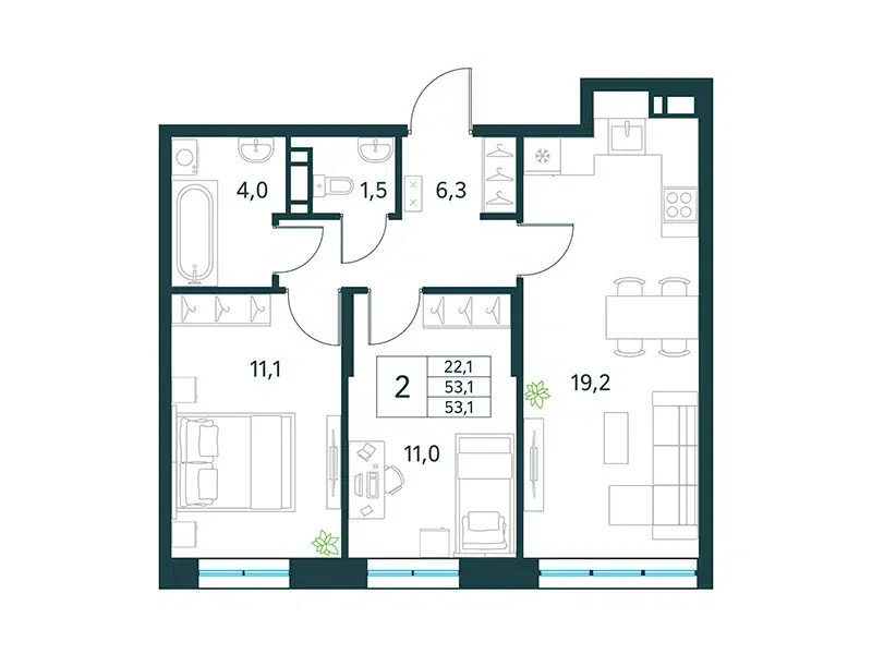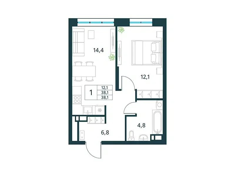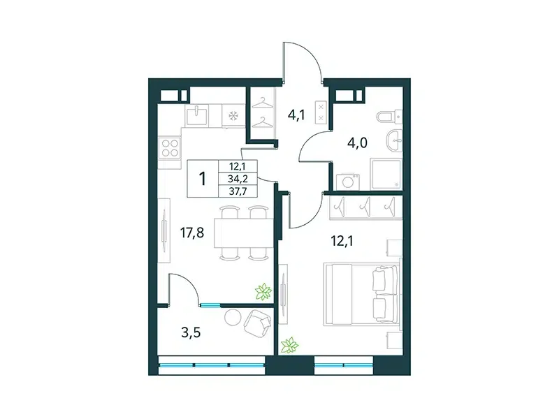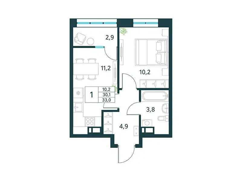 Площадь от 33 м2