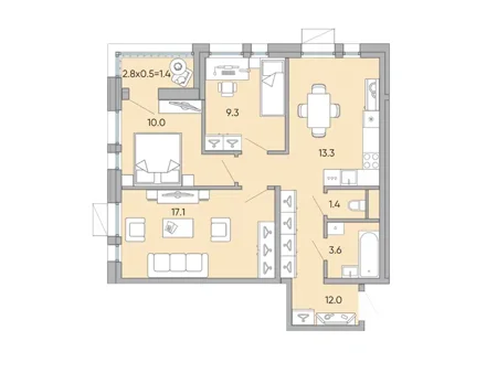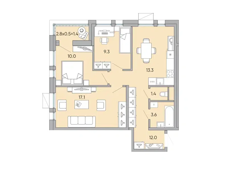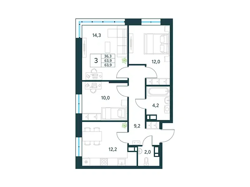 Площадь от 63.7 м2