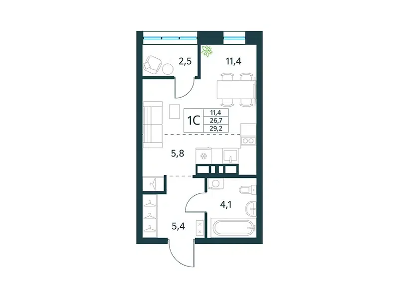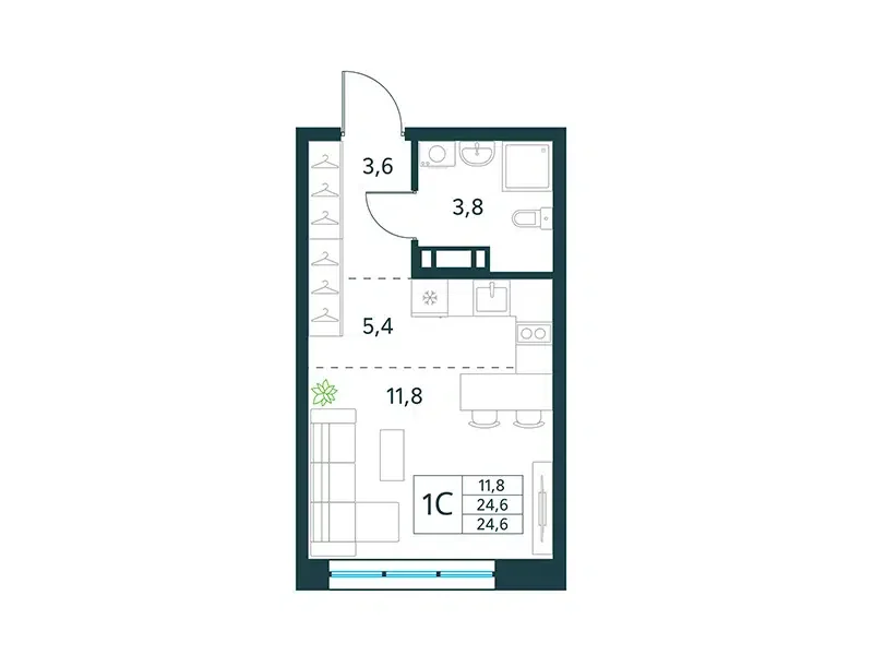 Площадь от 24.3 м2